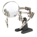 Зажим для пайки "Третья рука " с лупой является незаменимым помощником при пайке и отпайке мелких деталей или электрических кабелей. Также хорошо работает при создании/ремонте украшений, часов, мелкой электроники. Благодаря использованию регулировочных шарниров у нас есть много возможностей приспособить ручку к удерживаемому элементу, а массивное чугунное основание обеспечивает устойчивость конструкции.