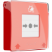 Кнопка ManualCallPoint позволяет активировать тревогу при экстренной ситуации. Для этого поднимите прозрачную защитную крышку (если установлена) и нажмите на центральную часть (восстанавливаемый хрупкий элемент). Хрупкий элемент смещается внутрь и поднимает тревогу, а сверху и снизу от него появляются две желтые полосы, указывающие на состояние устройства.
