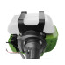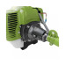 Модель оснащена мощным двухтактным двигателем на 4200 Вт, который обладает повышенным ресурсом и высокой выносливостью основных узлов. Количество оборотов – 8-9 тыс. в минуту, максимальная ширина покоса – 41,5 см. Объем топливного бака составляет 1,2 л, – такого количества бензина хватит на 2 часа непрерывной работы.