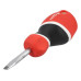 Плоская отвертка с цилиндрическим хвостовиком, изготовленная из стали S2, закаленной примерно до 58 HRC. Поверхность хвостовика сатинирована, рабочий кончик закаленный и обработанный пескоструйной обработкой /усиливает стойкость клинка/. Рукоятка изготовлена из соответственно подобранных пластмасс разной жесткости. /h2>