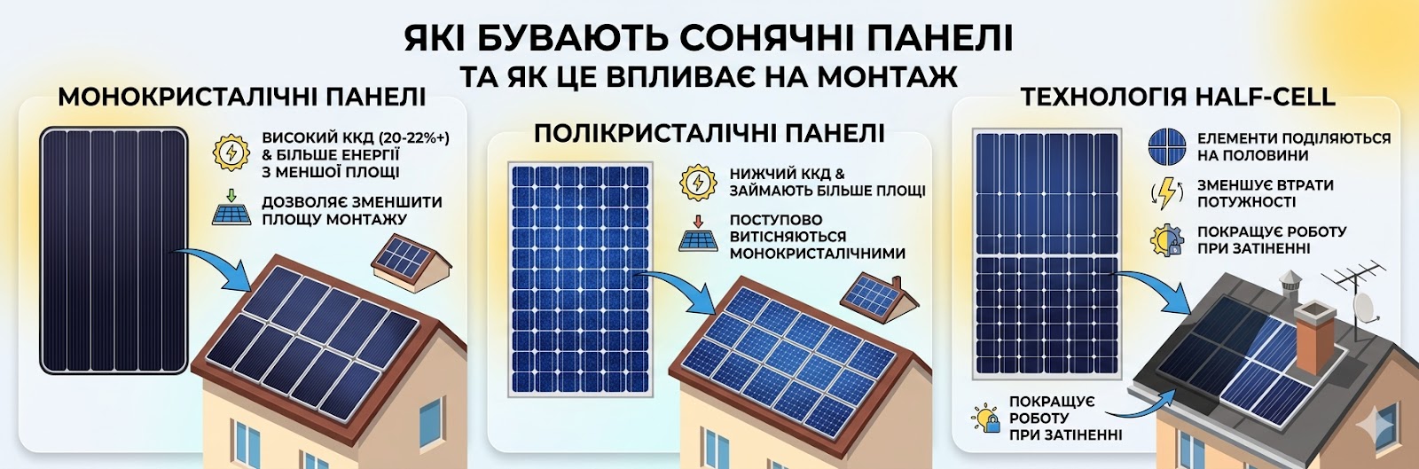 Які бувають сонячні панелі та як це впливає на монтаж