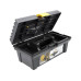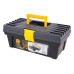 Ящик для інструментів 12 з висувним лотком з тримачем біт. Виготовлений із пластику. Надійна застібка запобігає небажаному відкриттю під час використання. Ящик має бічні ручки спеціальної форми для зручного перенесення. Має навісний замок. Використовується для зручного транспортування різного роду предметів, наприклад, інструментів, рибальського приладдя тощо.