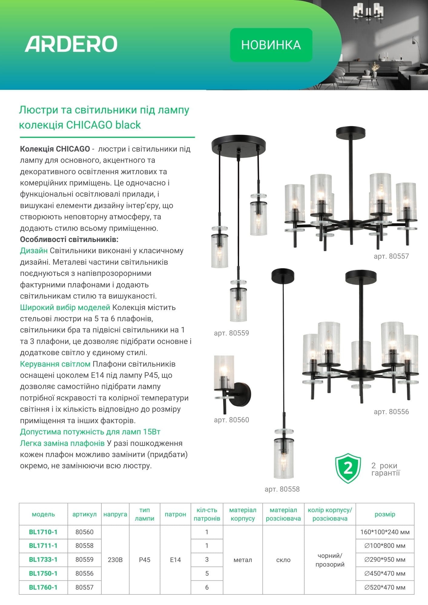 Додаткові матеріали Накладний світильник Ardero BL1733-1 CHICAGO під лампу чорний
