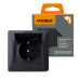 Основні характеристики Розетка одинарна із заземленням та кришкою чорний графіт VIDEX BINERA